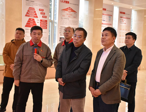 慰問(wèn)團(tuán)一行人首先參觀了公司的黨建和企業(yè)展廳,黎福超向慰問(wèn)團(tuán)一行人介紹了公司黨建工作、企業(yè)生產(chǎn)經(jīng)營(yíng)和發(fā)展規(guī)劃等情況。